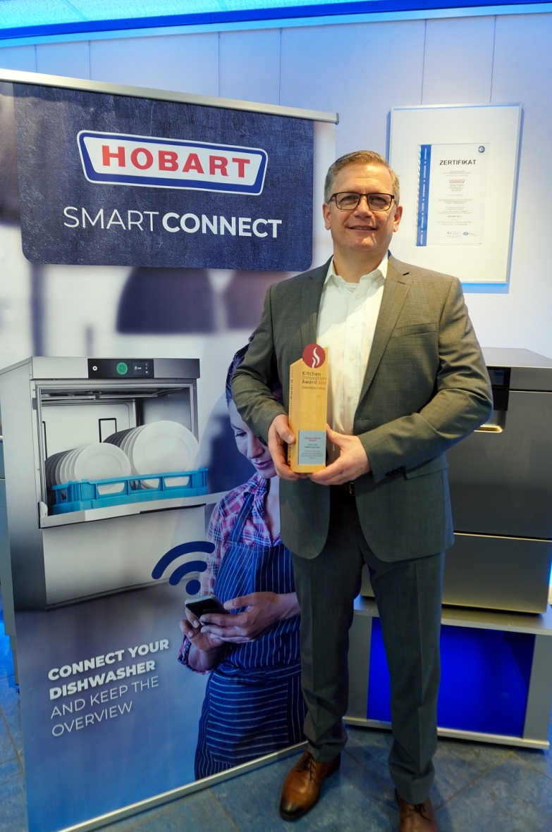 "Vernetzung ist die Zukunft", sagt Markus Bau, Director Food-Service bei Hobart, und freut sich über den Kitchen Innovation Award. Foto: Hobart"Vernetzung ist die Zukunft", sagt Markus Bau, Director Food-Service bei Hobart, und freut sich über den Kitchen Innovation Award. Foto: HobartDer begehrte Verbraucherpreis ist ein branchenweit wertvolles Zertifikat, das die Anerkennung der Konsumenten hinsichtlich der Innovationskraft der jeweiligen Gewinner-Unternehmen widerspiegelt. Als Konsumentenpreis konzipiert möchten die Initiatoren mit dem Kitchen Innovation Award die Bedürfnisse von Verbrauchern erfassen, bedarfsgerechte Produktinnovationen fördern und besonders verbrauchergerechte Produkte herausstellen. Die Besonderheit: Der Wettbewerb zeichnet sich durch sein mehrstufiges Auswahlverfahren aus. Dazu zählen die Nominierung, eine anschließende Konsumentenbefragung sowie die Preisvergabe.